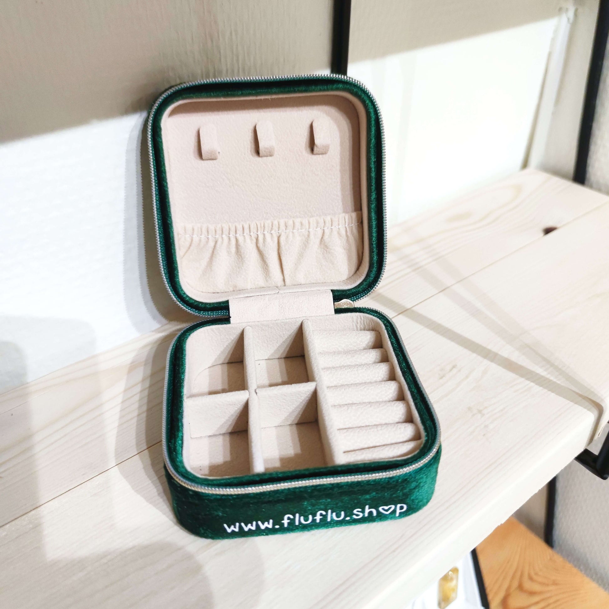 Praktisk smyckeskrin i kompakt format perfekt för att organisera och skydda dina älskade smycken. Mjuk ytteryta med unikt designtryck ger en personlig touch, medan de flera inre facken håller allt ordnat och åtskilt. Guldtonad dragkedja säkerställer säker förslutning, och den handvänliga storleken på cirka 10 x 10 cm gör den idealisk för hemmabruk eller att ta med på resor. Väl genomtänkt förvaring för smycken av olika slag.